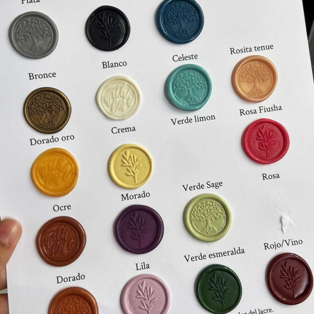 El pedido mínimo de sellos de lacre es de 25 piezas y puedes escoger un solo color. (Puedes encontrar los colores disponibles en las fotos del producto)